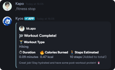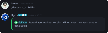 You may stop, start or input workouts you forgot to track with the following commands.Starting Workouts